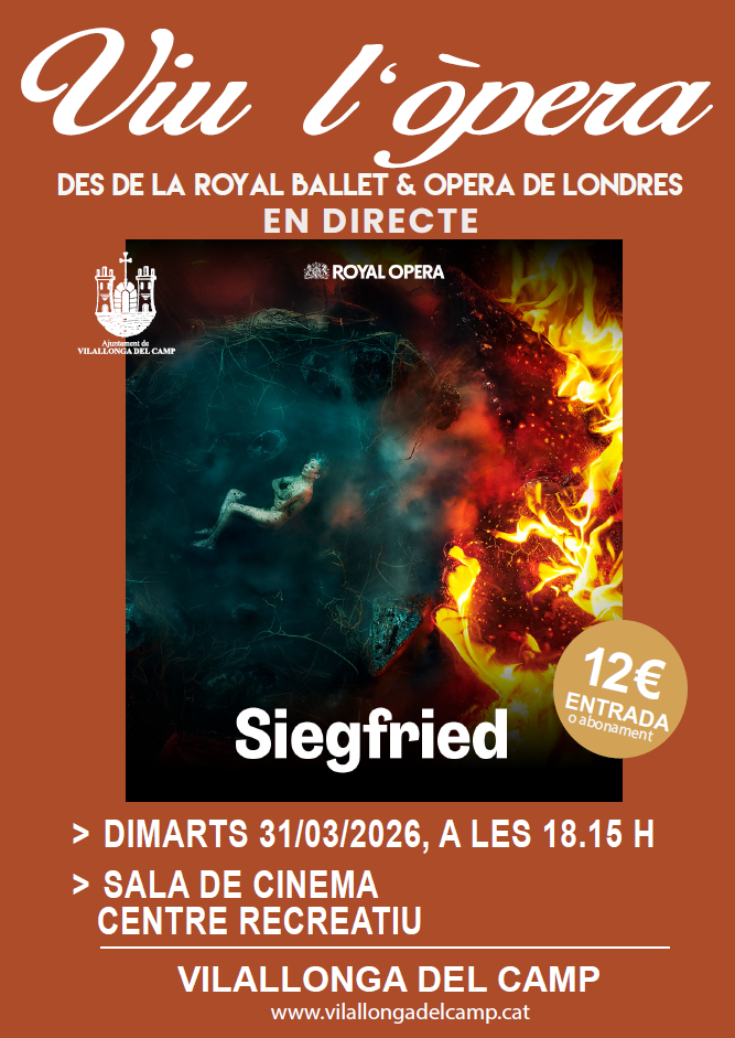 Dimarts 31 de març, la Sala de Cinema del Centre Recreatiu acollirà la transmissió en directe de l’òpera Siegfried des de la Royal Opera House. La projecció començarà a les 18.30 h i oferirà al públic l’oportunitat de gaudir d’aquesta gran obra de Richard Wagner amb qualitat cinematogràfica.