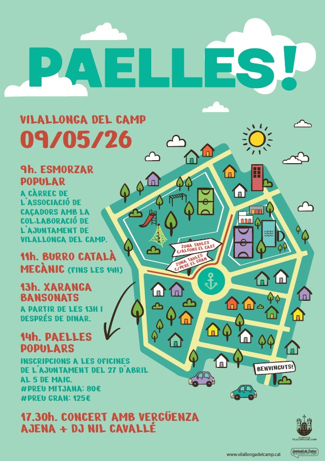 Obrim el període d’inscripcions per participar en el dinar popular “Les Paelles 2026”, que se celebrarà el dissabte 9 de maig, a causa del tancament del Parc de les Parades, la festa es traslladaen als carrers d’Alfons el Cast i Pere el Gran, la plaça de l’Àncora i, si cal, el carrer Miquel Martí i Pol.