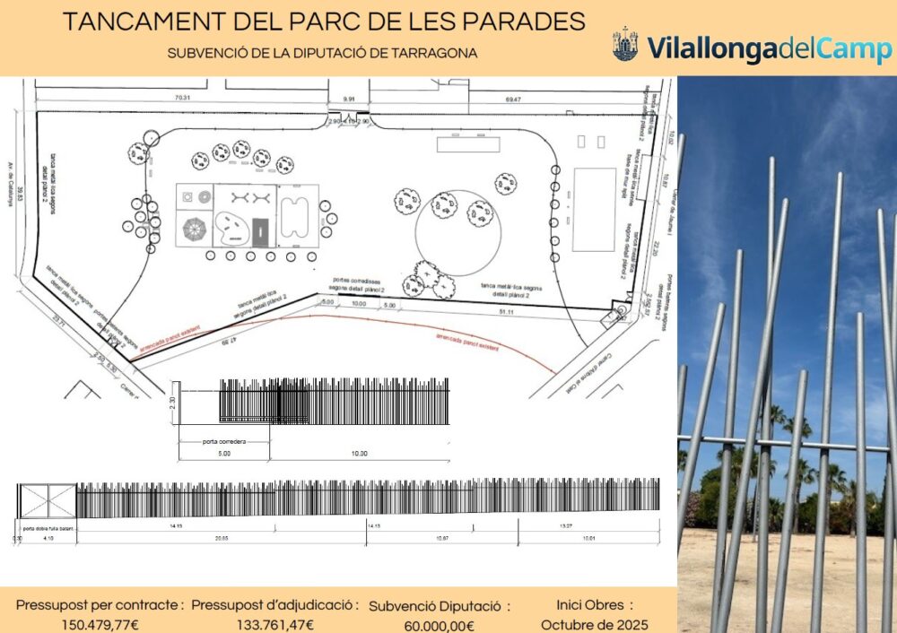 L’Ajuntament de Vilallonga del Camp informa que a partir del dilluns 13 d’octubre de 2025, s’iniciaran les obres del tancament del Parc de les Parades.Per aquest motiu el parc romandrà fora de servei i no serà accessible al públic fins a nou avís. Agraïm la comprensió i col·laboració de la ciutadania durant el temps que durin les obres. Disculpeu les …