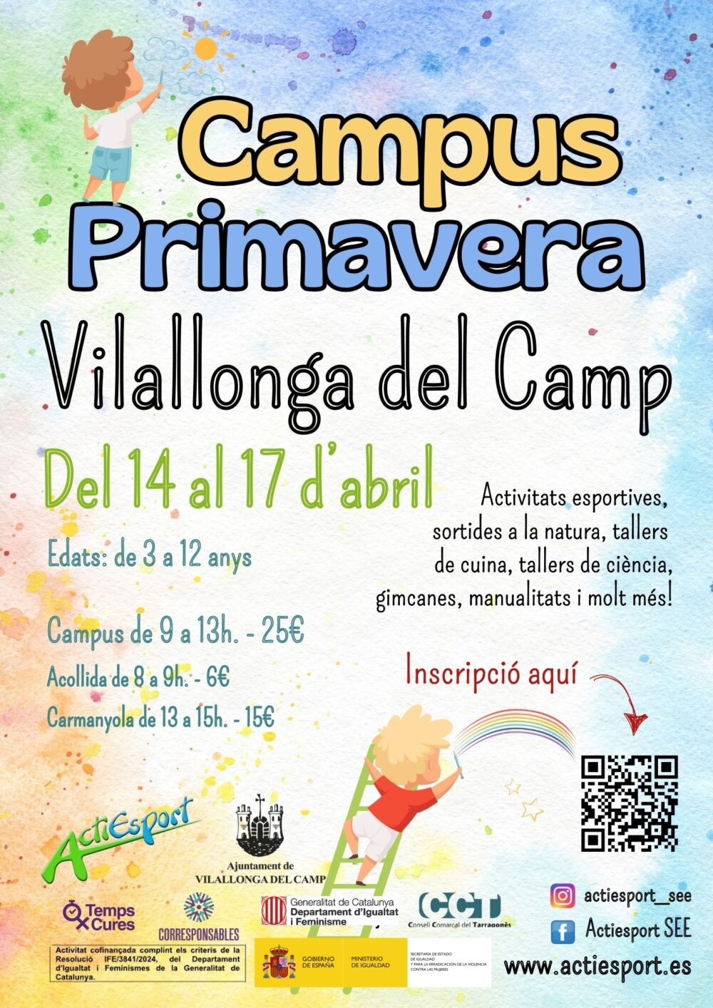 Del 14 al 17 d’abril de 2025 L’Ajuntament de Vilallonga del Camp anuncia l’organització d’un Campus de Primavera destinat a nens i nenes d’entre 3 a 12 anys. Una oportunitat única perquè els més petits gaudeixin d’unes vacances actives i educatives plenes d’aventures. El campus, que tindrà lloc a l’Escola Pere Virgili, ofereix un ampli ventall d’activitats: des d’esports, sortides …